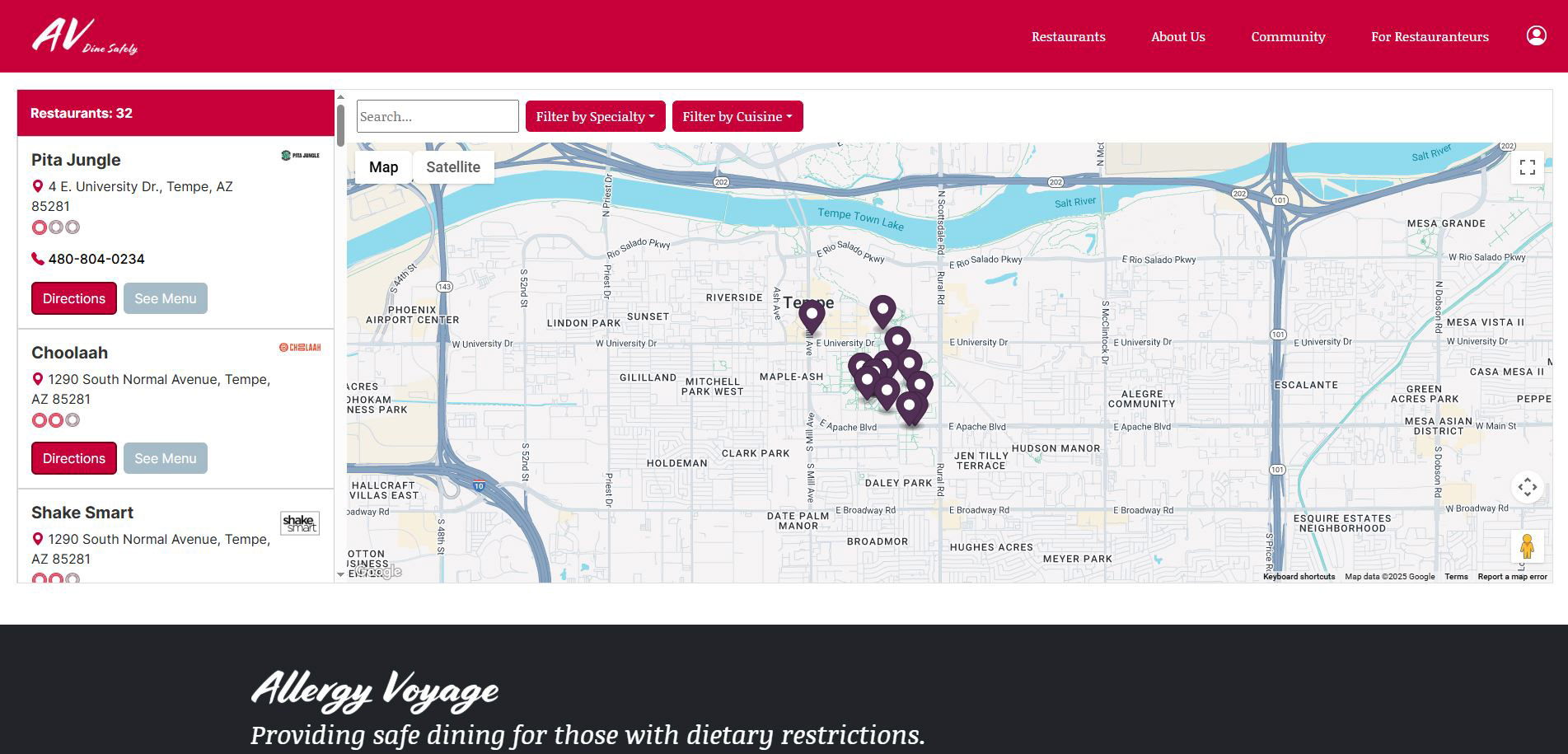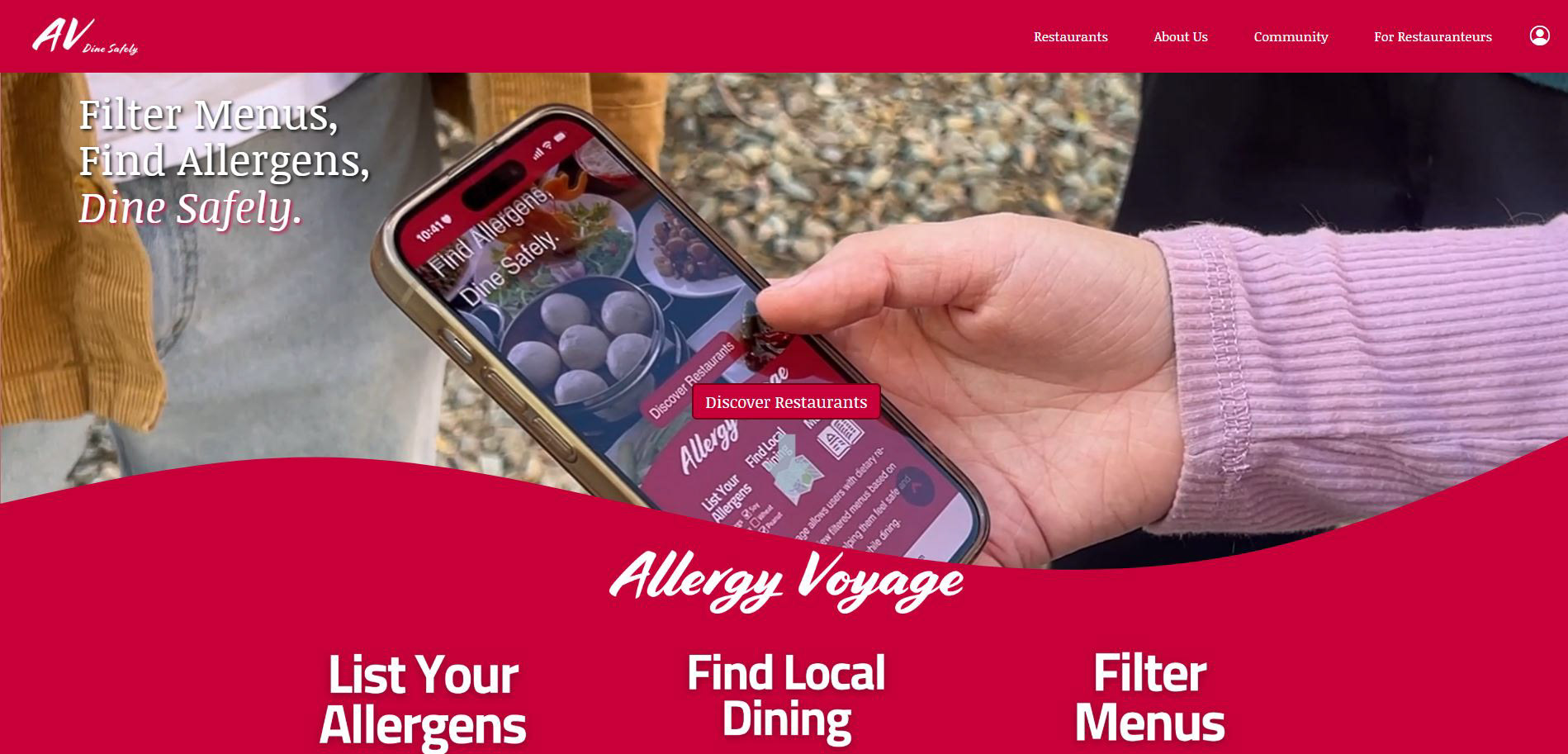 Allergy Voyage hosts the menus of restaurants for users with severe dietary restrictions to feel safer and confident while dining. This allows restaurants to earn additional revenue, and users with allergies to have more cohesive dining experiences.